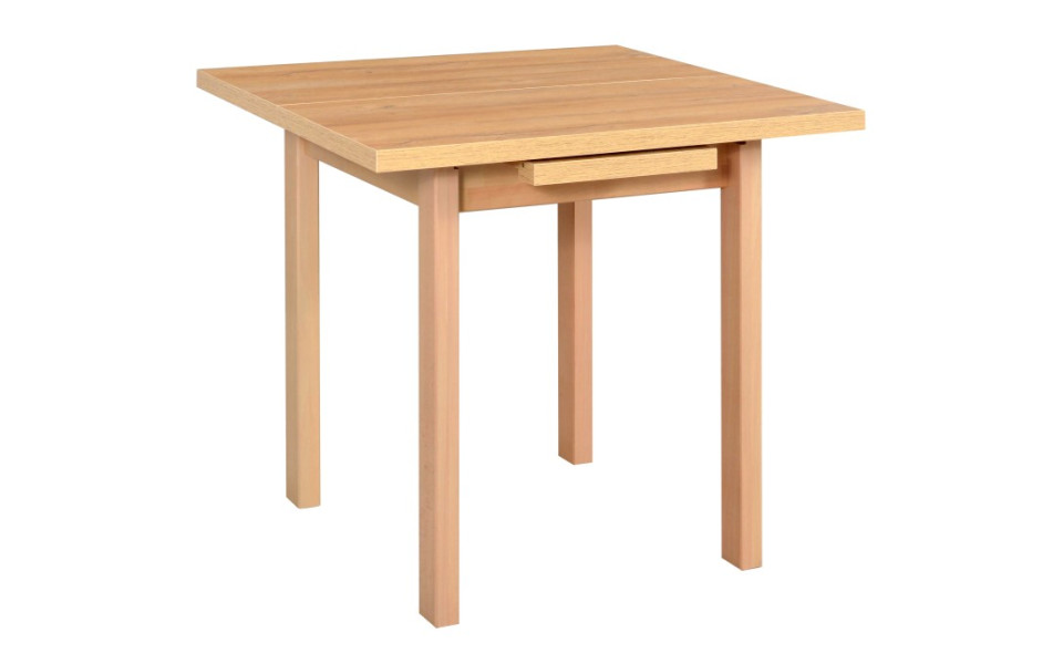 Stůl je v rozměru: délka ve složeném stavu je 80 cm a délka v rozloženém stavu 110 cm, šířka stolu je 80 cm, výška 76 cm. Tloušťka noh stolu je 65x65 mm.