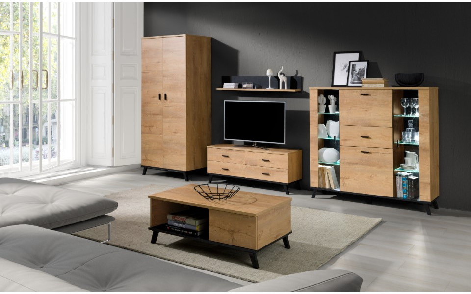 Prvky této obývací stěny lze zakoupit také samostatně. Obývací pokoj si můžete sestavit z jednotlivých dílů dle Vašich představ.