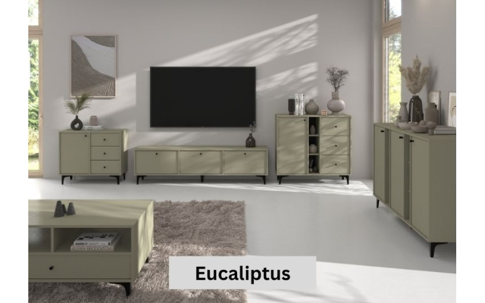 Sestava je z laminovaného dřevotřískového materiálu, který je odolný a nenáročný na údržbu.