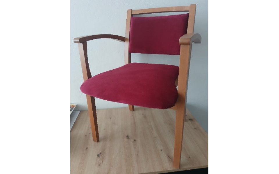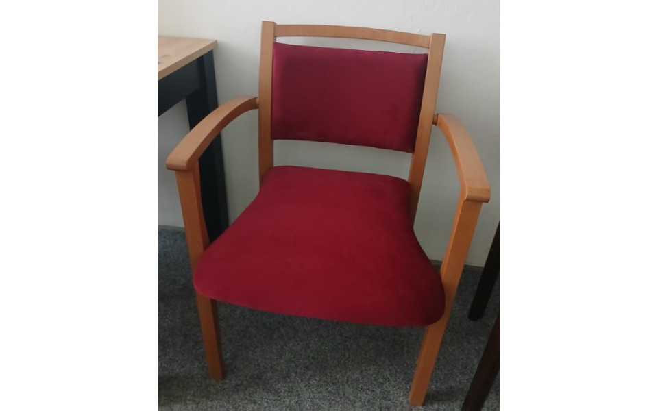 Tato židle je v odstínu olše s červeným čalouněním KRONOS 2. Fotografie ve stohu je ilustrační.