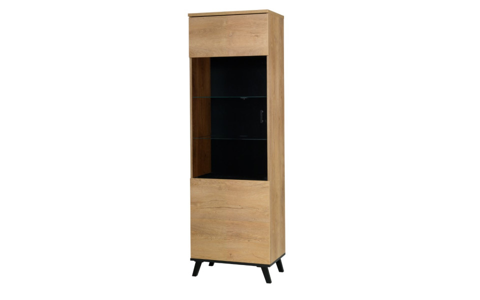 Tato vitrína je vyrobena z laminové desky tl.16mm v barvě Dub Lefkas / černá.