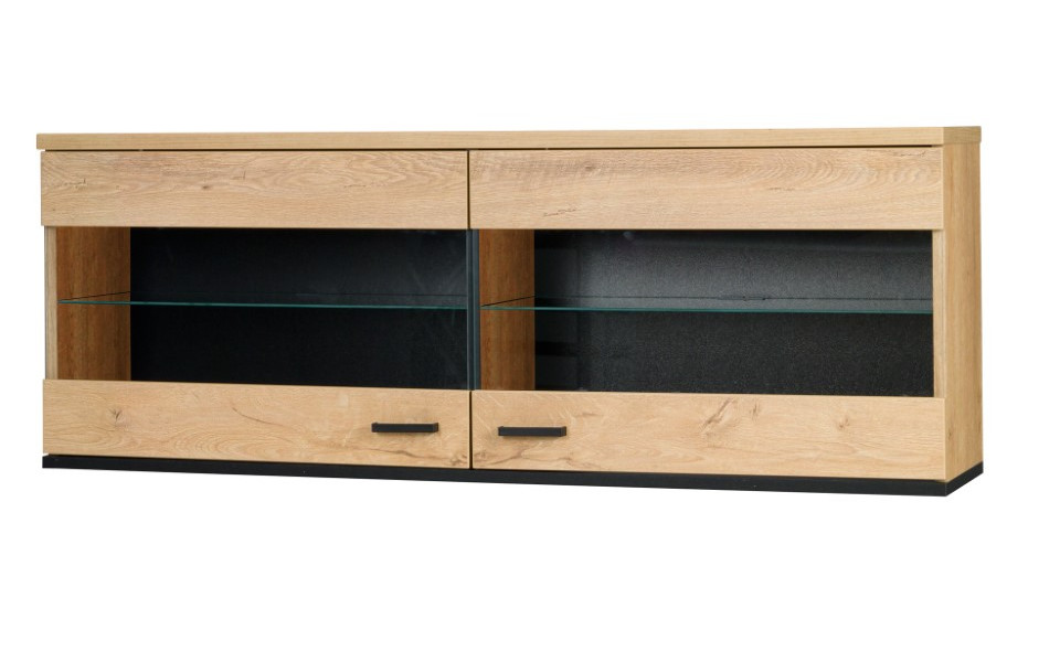Tato vitrína je vyrobena z laminové desky tl.16mm v barvě Dub Lefkas / černá.